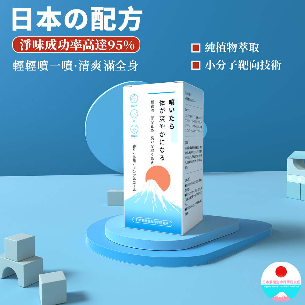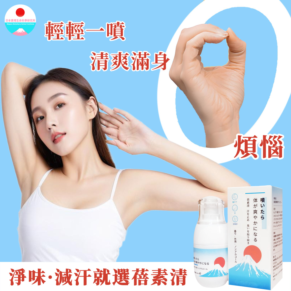 日本原裝進口|蓓素清清爽身噴霧,日本素晴生命科學研究所十年研發!北美金縷梅葉、葡萄籽等天然植萃經小分子技術萃取,核心成分精准收縮大汗腺,減少分泌物,滅菌止臭。小分子靶向技術直達根源,溫和適用腋下、腹股溝以及腳部,持久清爽!